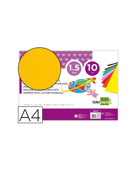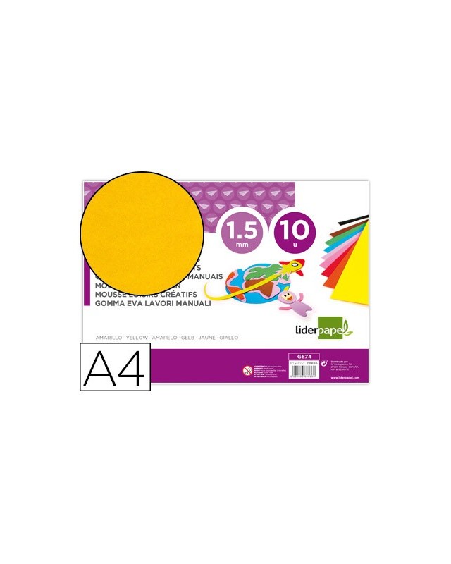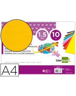 Goma eva liderpapel din a4 60g/m2 espesor 1,5mm amarillo paquete de 10 hojas