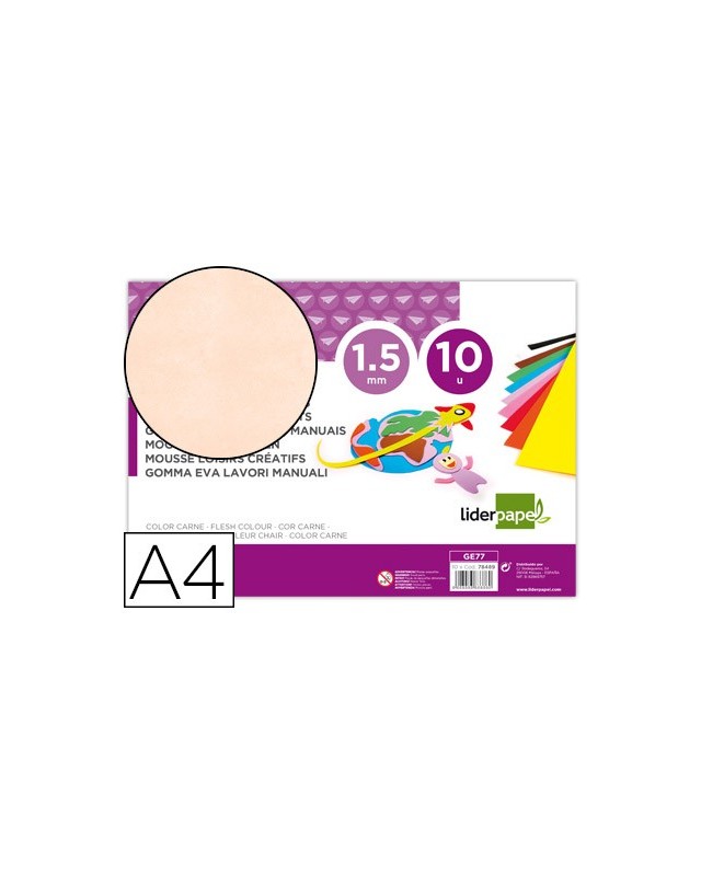 Goma eva liderpapel din a4 60g/m2 espesor 1,5mm carne paquete de 10 hojas