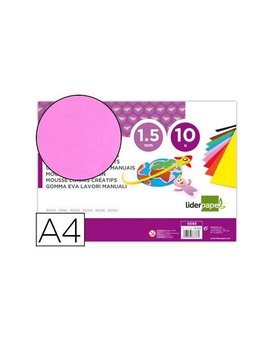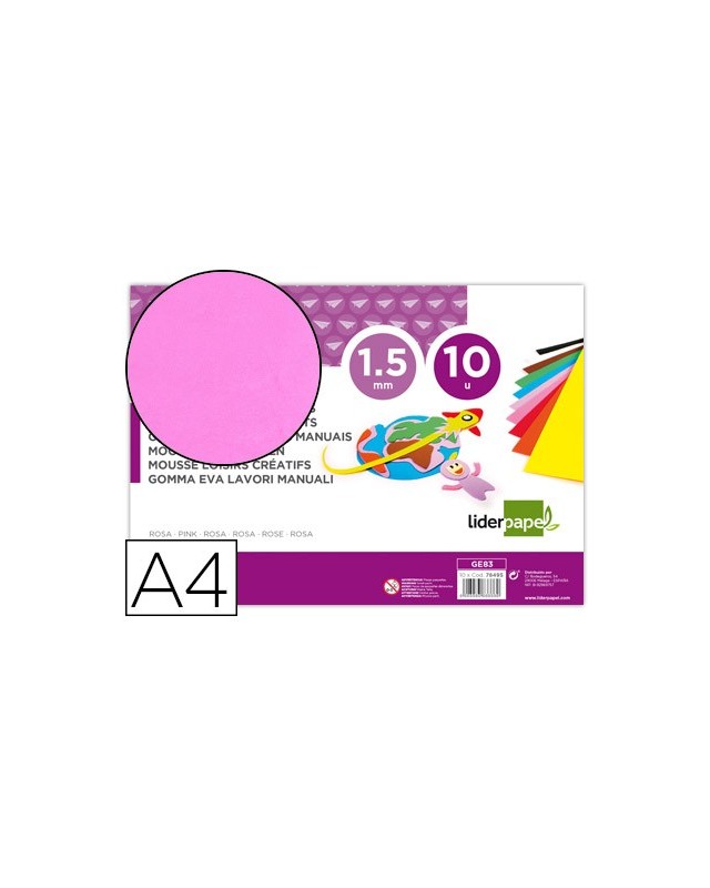 Goma eva liderpapel din a4 60g/m2 espesor 1,5mm rosa paquete de 10 hojas
