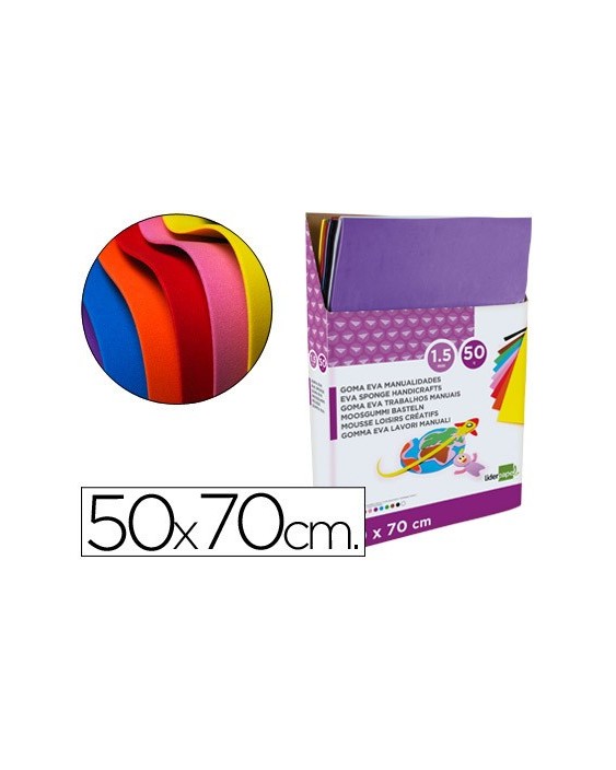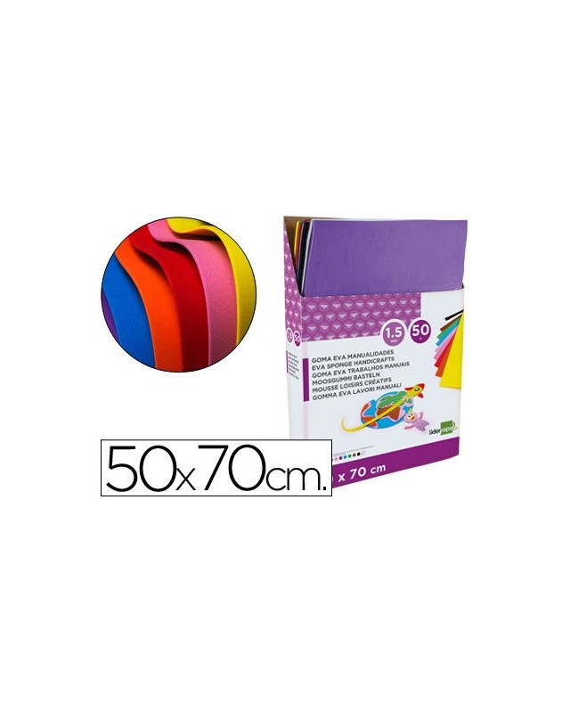 Goma eva liderpapel expositor de 50 planchasx10 colores surtidos 50x70 cm 1,5 mm espesor