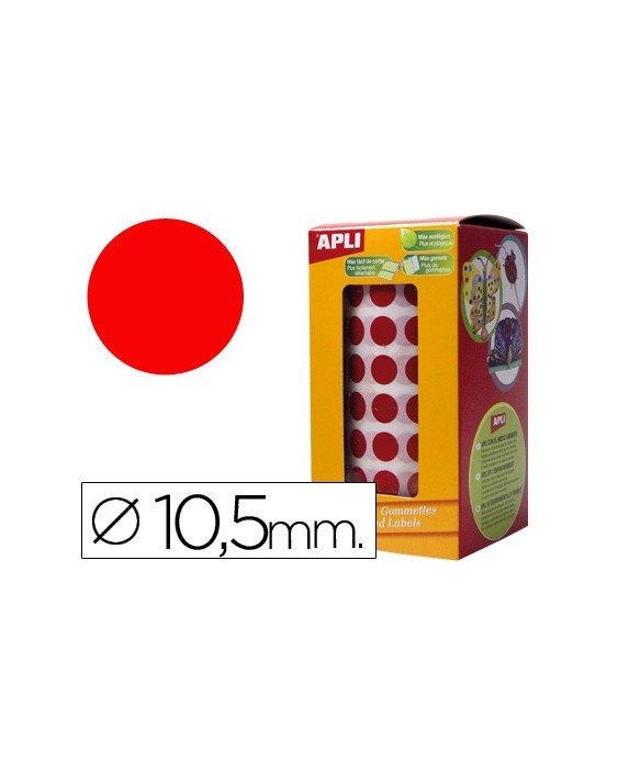 Gomets autoadhesivos circulares 10,5 mm rojo rollo de 5192 unidades