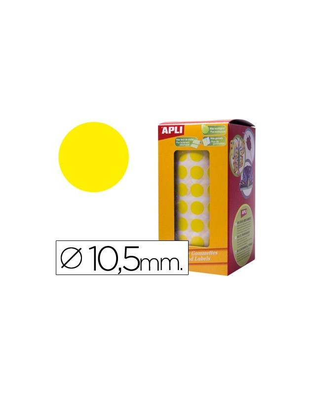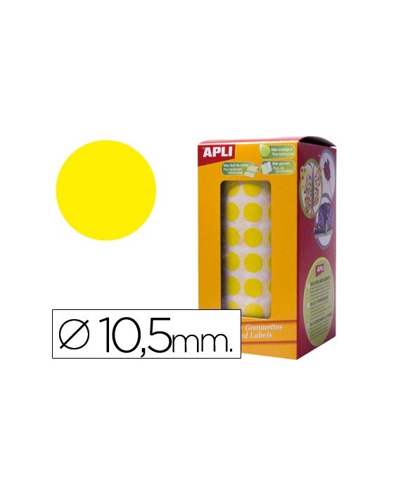 Gomets autoadhesivos circulares 10,5mm amarillo rollo de 5192 unidades