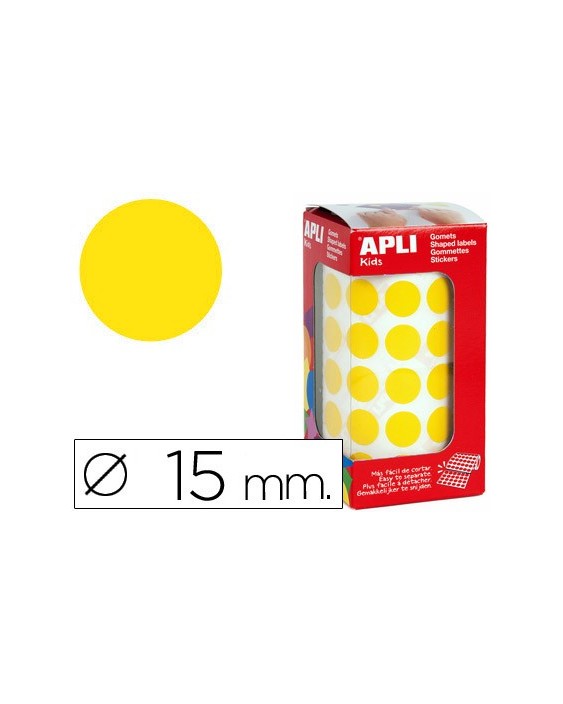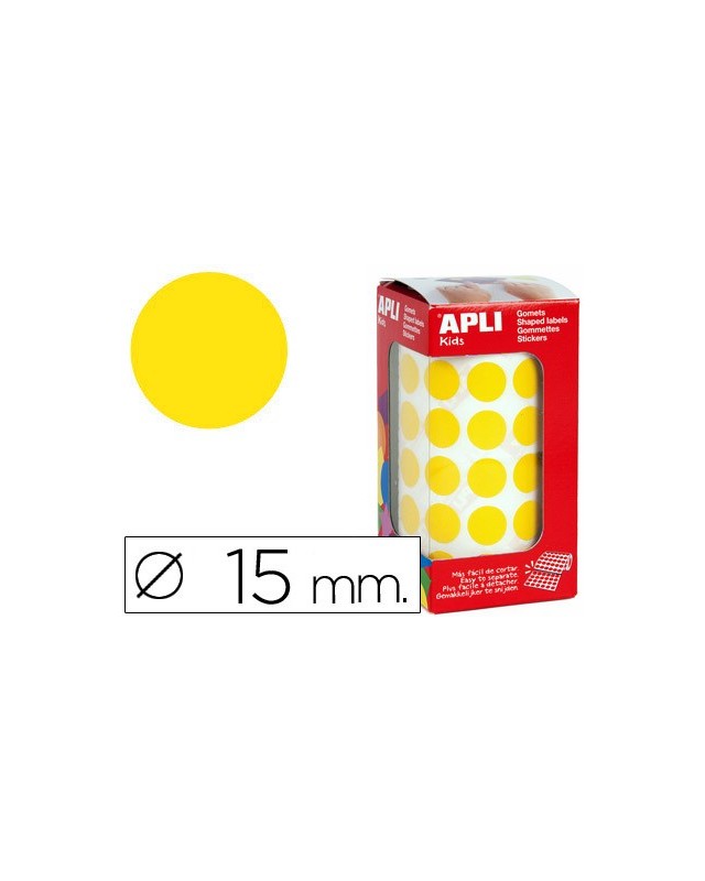 Gomets autoadhesivos circulares 15 mm amarillo en rollo con 2832 unidades