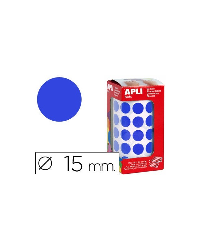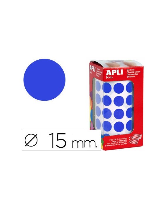 Gomets autoadhesivos circulares 15 mm azul en rollo con 2832 unidades