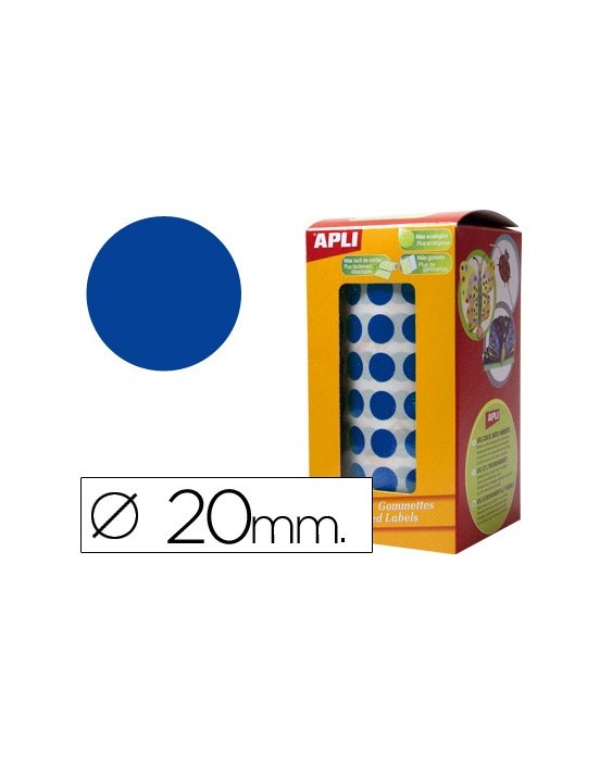 Gomets autoadhesivos circulares 20mm azul rollo de 1770 unidades