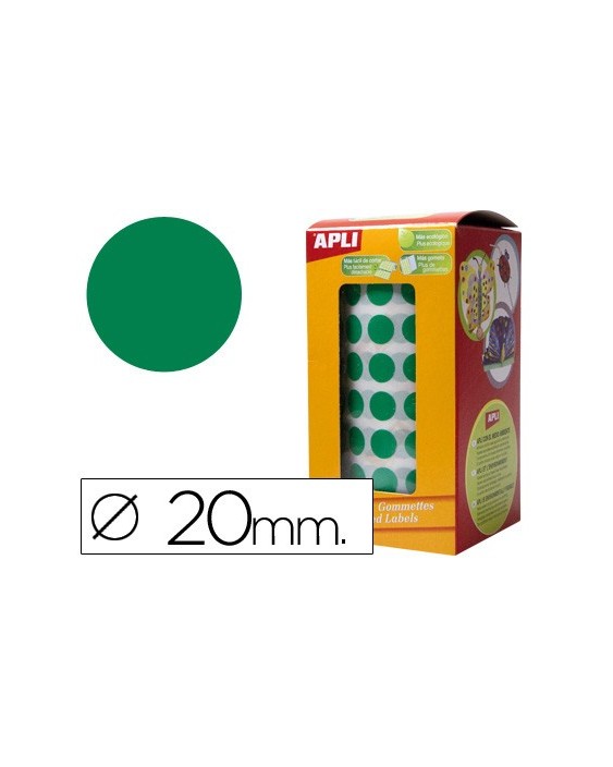 Gomets autoadhesivos circulares 20mm verde rollo de 1770 unidades