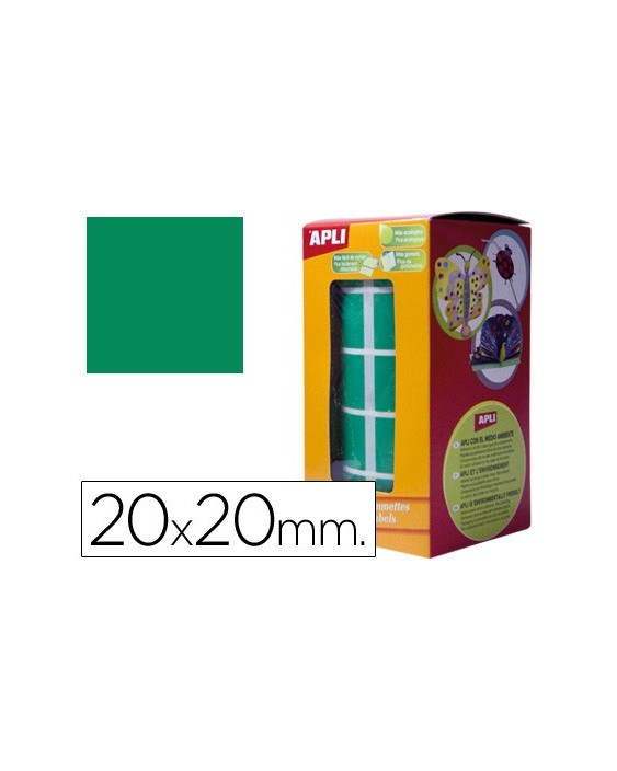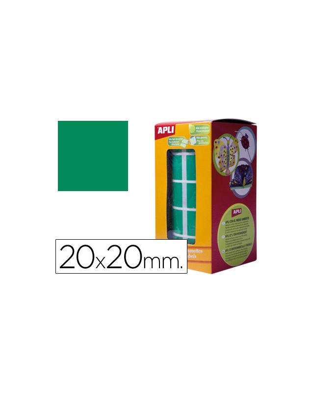 Gomets autoadhesivos cuadrados 20x20 mm verde rollo de 1770 unidades