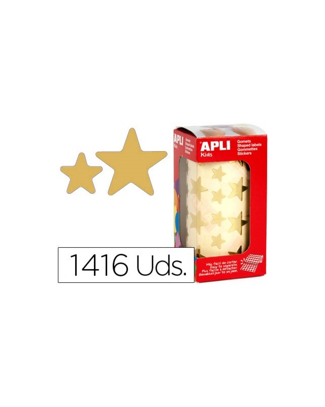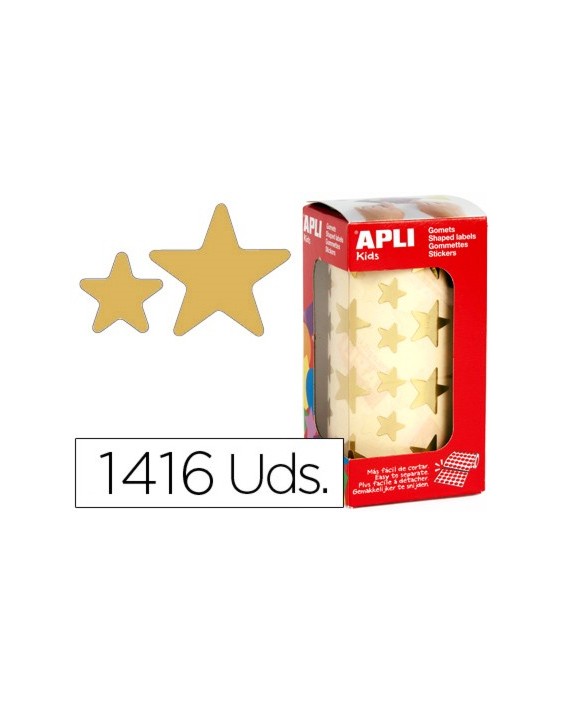 Gomets autoadhesivos estrellas grandes oro en rollo con 1416 unidades
