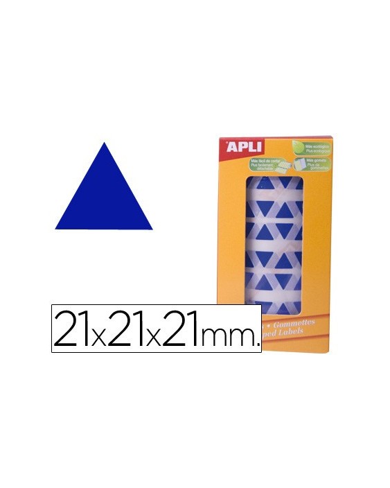 Gomets autoadhesivos triangulares 21x21x21 mm azul rollo de 2832 unidades