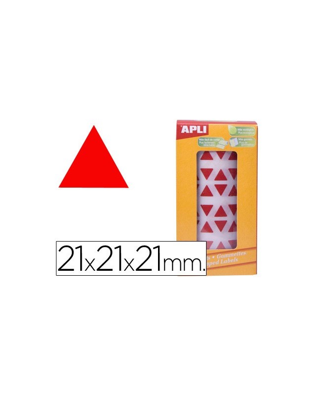 Gomets autoadhesivos triangulares 21x21x21 mm rojo rollo de 2832 unidades