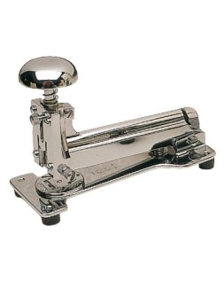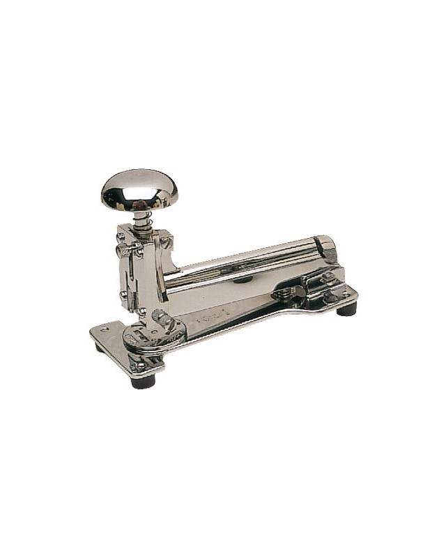 Fabricada en acero cromado. Usa grapas nº 22/6 y 24/6. Longitud del grapado a 80 mm del borde de la hoja. Carga 2 peines (100 grapas). Capacidad de grapado: 25 hojas. Carga trasera. Dispone de tornillo antiatasco. Color cromado. Longitud de la base: 140 mm. Medidas: 57 x 95 x 132 mm.