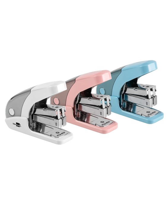 Grapadora fabricada en plástico con mecanismo metálico. Ahorro de fuerza al grapar de hasta un 50%. Estuche para almacenar grapas de 24/6 (50 grapas) y 26/6 (70 grapas) Usa grapas 24/6, 26/6. Longitud del grapado a 37 mm del borde de la hoja. Carga 1 peine (50 grapas). Incluye una caja de 1000 grapas. Capacidad de grapado Capacidad: 20 hojas de papel de 70 g/m². Incorpora extrae grapas trasero. Longitud de la base: 90 mm. Medidas: 35 x 55 x 90 mm.