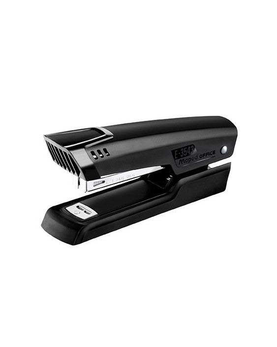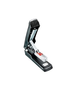 Grapadora metálica. Color negro. Con visualización de la reserva de grapas. Realiza 2 funciones: grapado y clavado. Usa grapas 24/6 y 26/6. Capacidad de carga: 100 grapas 24/6 ó 140 grapas 26/6. Carga superior. Capacidad de grapado hasta 25 hojas. Profundidad de grapado: 61 mm. Longitud de la base: 120 mm. Medidas: 32 x 62 x 120 mm.