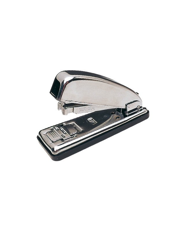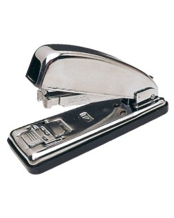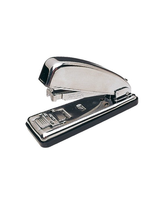 Metálica cromada. Con capacidad de carga de 70 grapas nº 22/6 y 24/6. Longitud de grapado a 72 mm del borde de la hoja. Con base plástica antideslizante. Con cargador doble guía antiatascos. Carga frontal. Incorpora el grapado PGT (Paper Grip Tecnology) para un grapado siempre perfecto. Longitud de la base: 125 mm. Medidas: 55 x 76 x 125 mm.