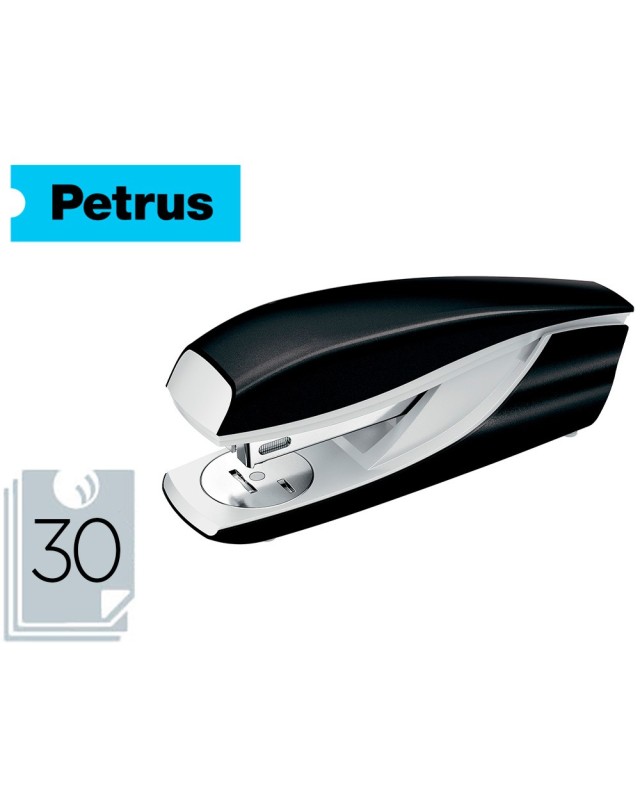 Grapadora petrus 635 wow negra metalizada capacidad 30 hojas