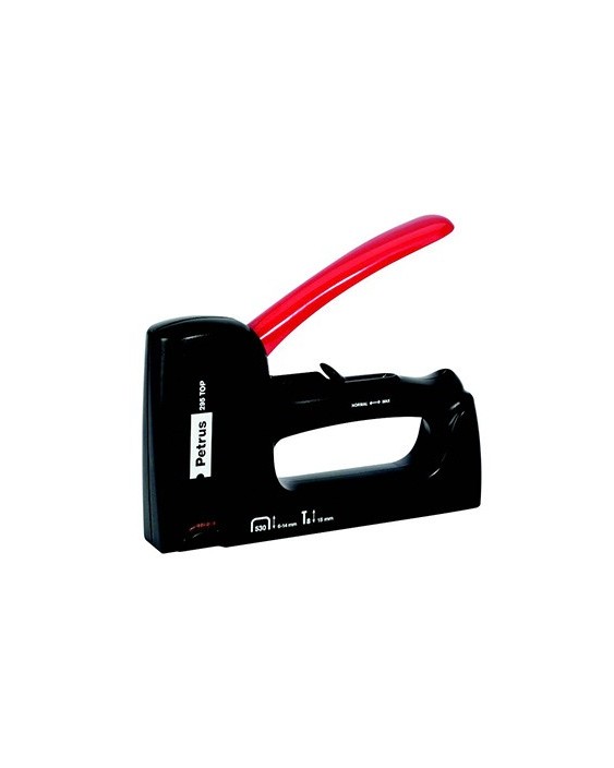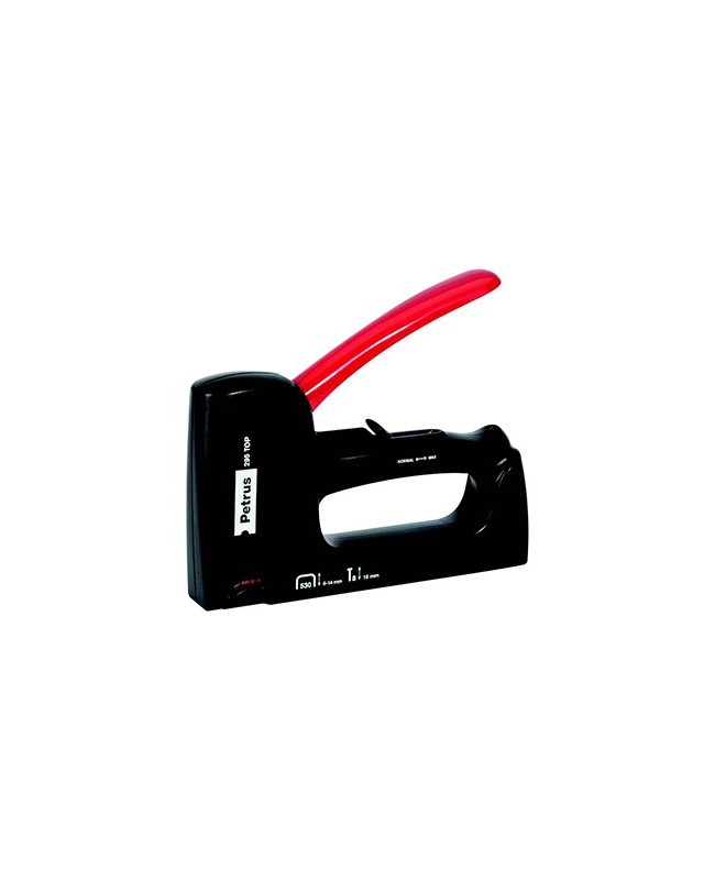 Clavadora ligera y potente con cuerpo de plástico. Clavado por impacto. De gran capacidad, es ideal para el bricolaje. Con ajuste de potencia. Sin retroceso y función de bloqueo. Usa grapas nº 530. Clava con una capacidad de 6 a 14 mm. Utiliza clavo de 8 a 15 mm. Carga 156 grapas y hasta 90 clavos (tipo 8). Color negro y rojo. Medidas: 45 x 200 x 205 mm.