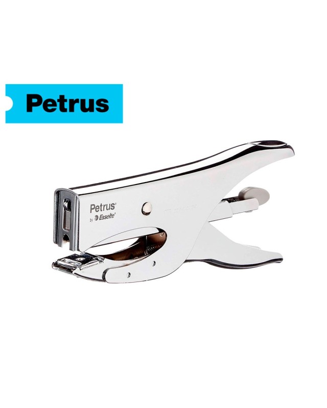 Grapadora petrus de tenaza 222 metalica cromada capacidad de grapado 40 hojas usa grapas 22/6-8 y 24/6-8