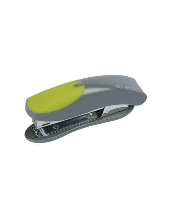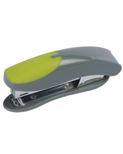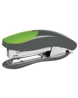 Grapadora de plástico gris y verde con mecanismo metálico. Usa grapas nº 10. Longitud del grapado al borde de la hoja: 55 mm. Carga 2 peines (100 grapas). Superficie verde de caucho antideslizante. Con extraegrapas trasero. Longitud de la base: 105 mm. Medidas: 24 x 45 x 105 mm.