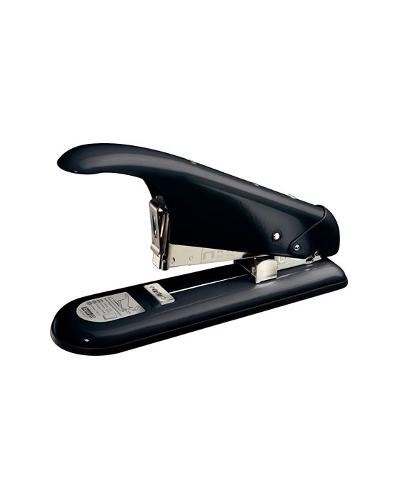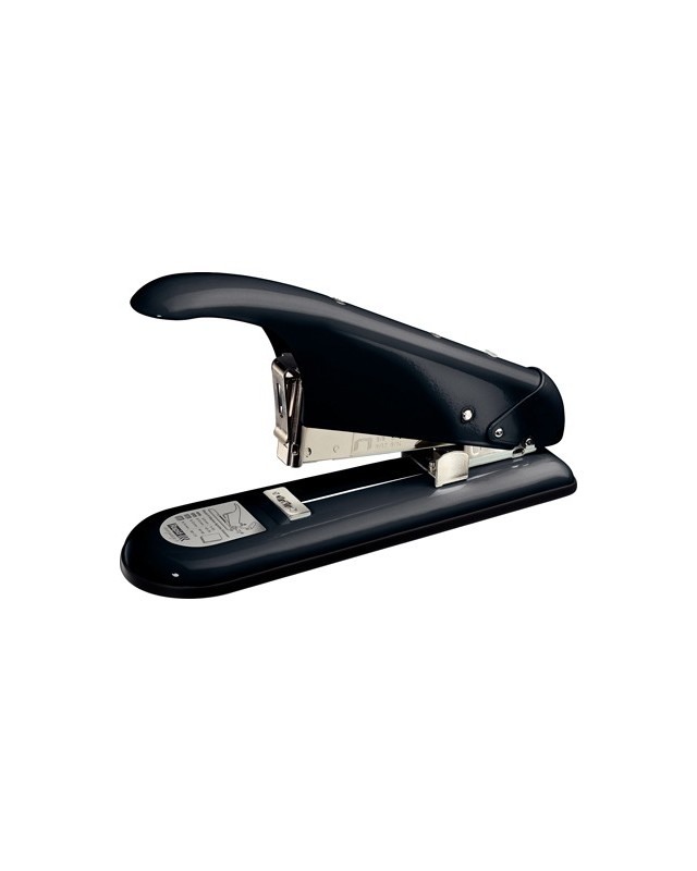 Grapadora de metal. Carga trasera con varilla de mantenimiento. Tope de papel ajustable. Ideal para servicios postales y oficinas. Usa grapas número 9/8-14. Profundidad de grapado: 85 mm. Capacidad de grapado: 110 hojas. Color negro. Medidas: 83 x 160 x 273 mm.