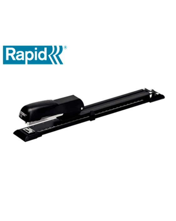 Grapadora rapid e15 metalica brazo largo capacidad 20 hojas usa grapas 24/6 y 26/26 color negro