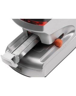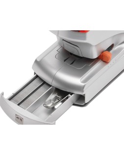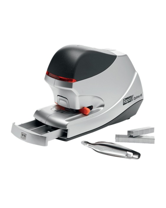 Ideal para grandes pilas de papel. Permite controlar cuándo y dónde va a ir la grapa. Base de caucho que aporta estabilidad extra. Ofrece un grapado cerrado, sin atascos y ahorro de espacio. Indicador LED que avisa cuándo hay que volver a cargar grapas. Quitagrapas incluido en el compartimento de carga de grapas. Funciona con grapas HD70. Profundidad de entrada de 10-20 mm. Grapa hasta 45 hojas simultáneamente. Incluye un paquete de 1000 grapas Optima 56 y un adaptador CA para Reino Unido / UE (incluido). Color gris y negro con detalles en naranja. Longitud de la base: 265 mm. Medidas: 98 x 159 x 235 mm.