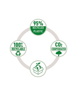 Mini grapadora eco-friendly para mantener tus documentos organizados al tiempo que ayuda a proteger el medio ambiente. La grapadora pequeña está fabricada con un 95% de plástico reciclado postconsumo y tiene un embalaje decartón 100% reciclado sin plástico con impresión ecológica a base de soja . Es compacta y ligera, por lo que cabe fácilmente en un bolso, en la bolsa del portátil o incluso en un bolsillo. Diseñada para grapar hasta 10 hojas de papel, esta grapadora 100% reciclable es ideal para todas tus tareasde grapado ligeras.
