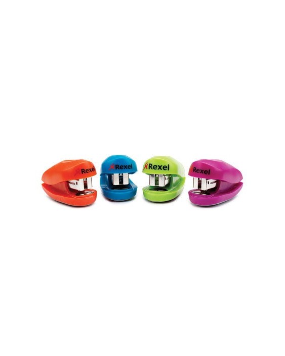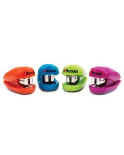 Combinando un diseño divertido con la fiabilidad, la mini grapadora Buddy tiene un práctico mecanismo de recarga de grapas por la parte superior y una base de goma suave. La Buddy grapa hasta 10 hojas a la vez y tiene una profundidad de entrada de 15 mm. Es compatible con las grapas Rexel nº 56 y viene con 1000 grapas. Disponible en 4 colores brillantes.
