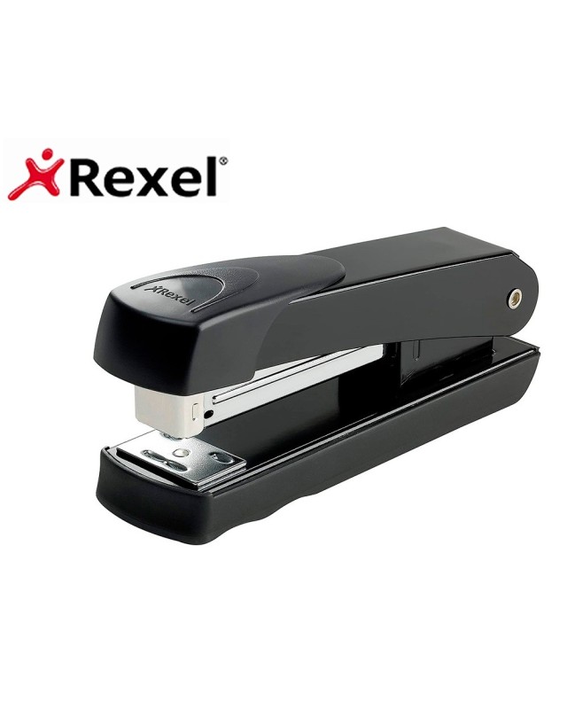 Grapadora metálica compacta de construcción sólida para grapar hasta 20 hojas . Ideal para el uso diario, puede utilizarse para trabajos de grapado permanentes o temporales. Con una profundidad de 65 mm, grapa hasta 15 hojas con grapas Rexel nº 56 (26/6) o hasta 20 hojas con grapas nº 16 (24/6).