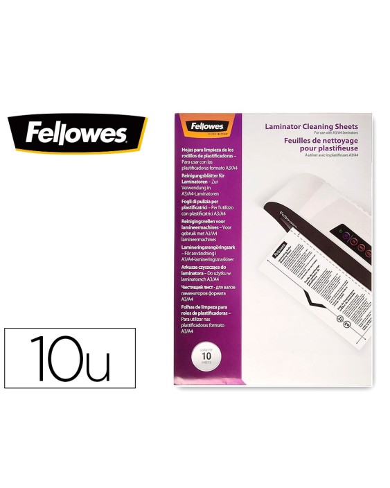 Hoja de limpieza fellowes para plastificadoras pack de 10 unidades