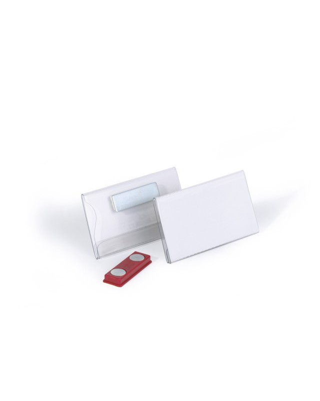 Portanombres con imán para fijar de forma fácil y cuidadosa a textiles delicados. Especialmente indicado para equipar a gran número de personas, p. ej. en conferencias y grandes eventos en los que no se suelen devolver lasetiquetas. Con uñero para fácil intercambio de las etiquetas. Etiquetas d e inserción imprimibles adecuadas.