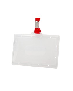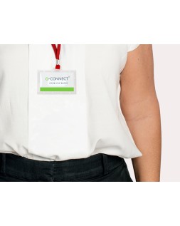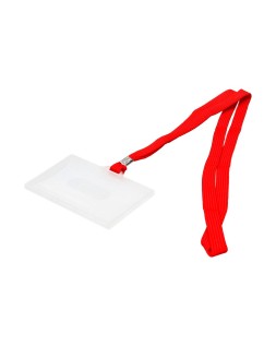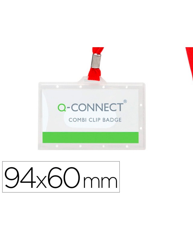 Identificador q-connect kf03303 con cordon plano rojo y apertura lateral 94x60 mm