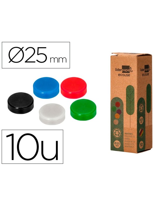 Iman para sujecion liderpapel ecouse pp reciclado para pizarra magnetica 25 mm caja de 10 unidades