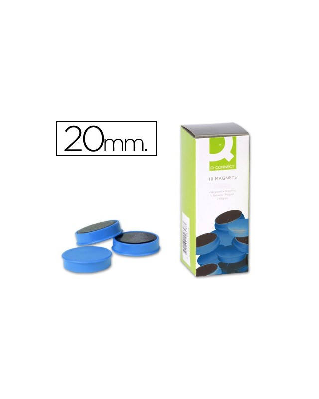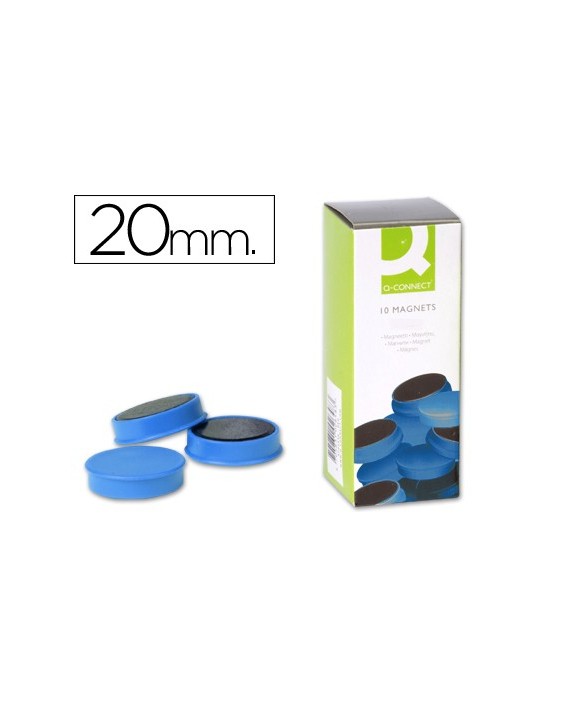 Iman para sujecion q-connect ideal para pizarras magneticas20 mm azul caja de 10 unidades