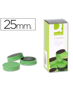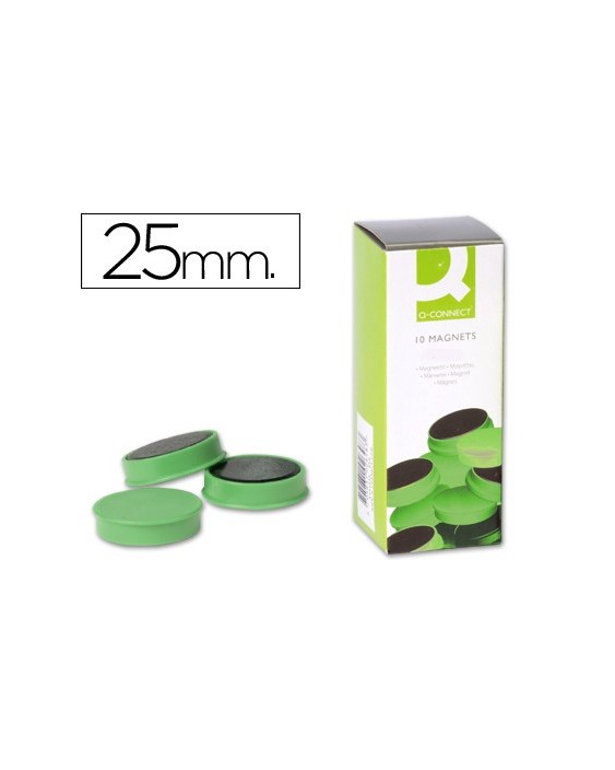 Iman para sujecion q-connect ideal para pizarras magneticas25 mm verde caja de 10 unidades