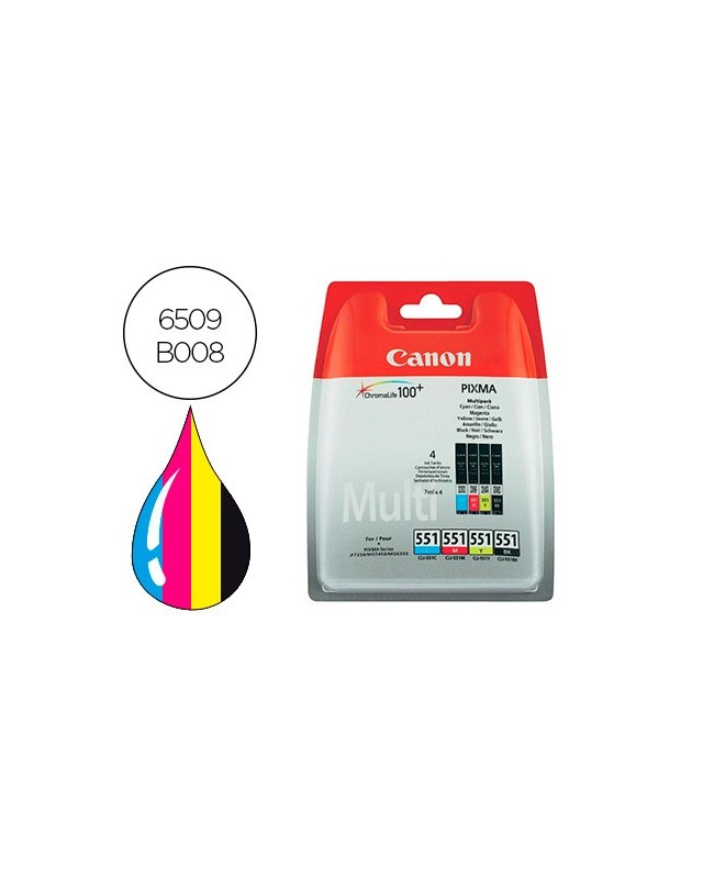 Ink-jet canon 551 c/m/y/bk pixma ip8750 / ix6850 / mg5550 / mg6450 / mg7150 / mx725 / mx925 pack 4 colores