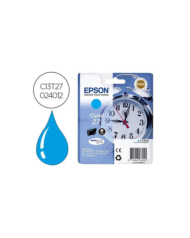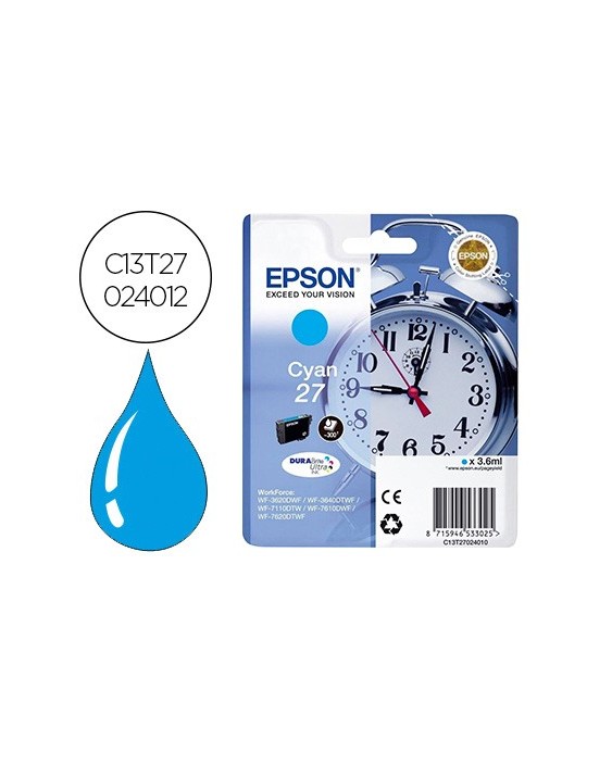 Ink-jet epson 27 wf3620 / 7110 / 7610 / 7620 cyan 300 pag