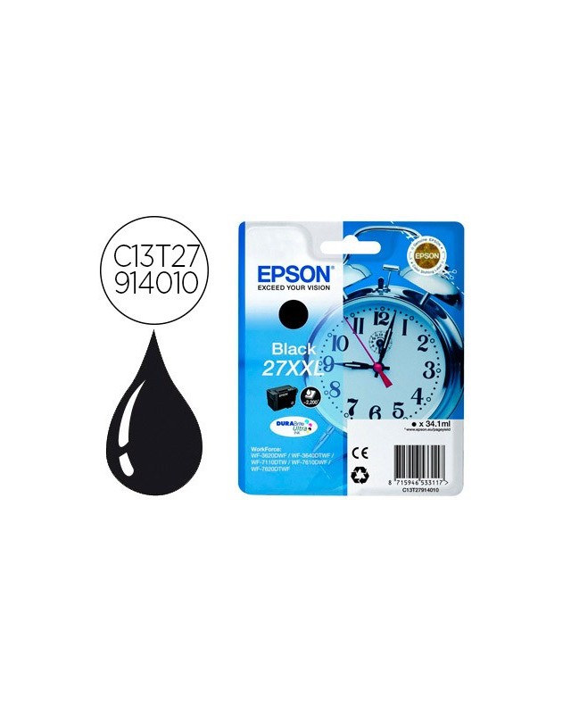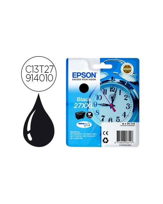 Ink-jet epson 27xxl wf3620 / 3640 / 7110 / 7610 / 7620 negro 2.200 pag
