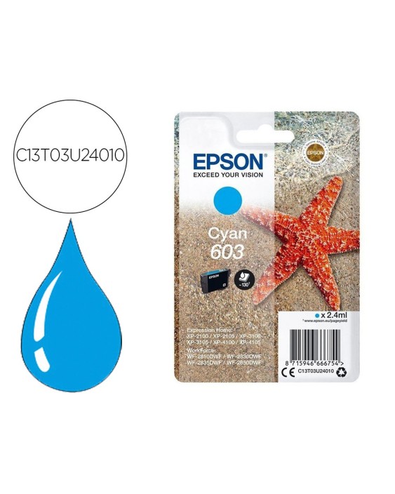 Ink-jet epson 603 xp-2100 / 2105 / 3100 / 4100 / wf-2810 / 2830 / 2835 / 2850 cian 130 paginas