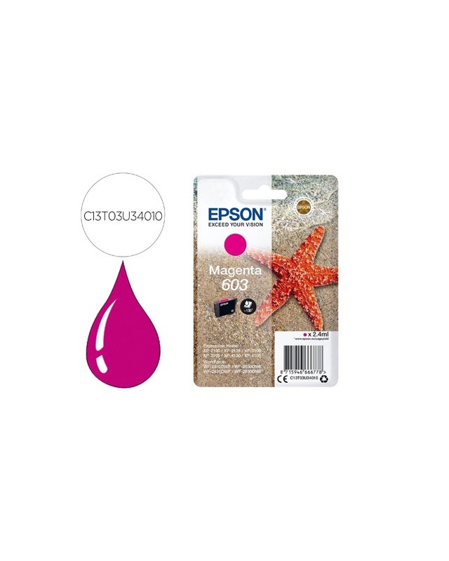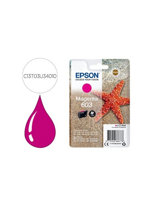 Ink-jet epson 603 xp-2100 / 2105 / 3100 / 4100 / wf-2810 / 2830 / 2835 / 2850 magenta 130 paginas