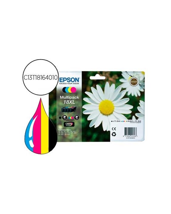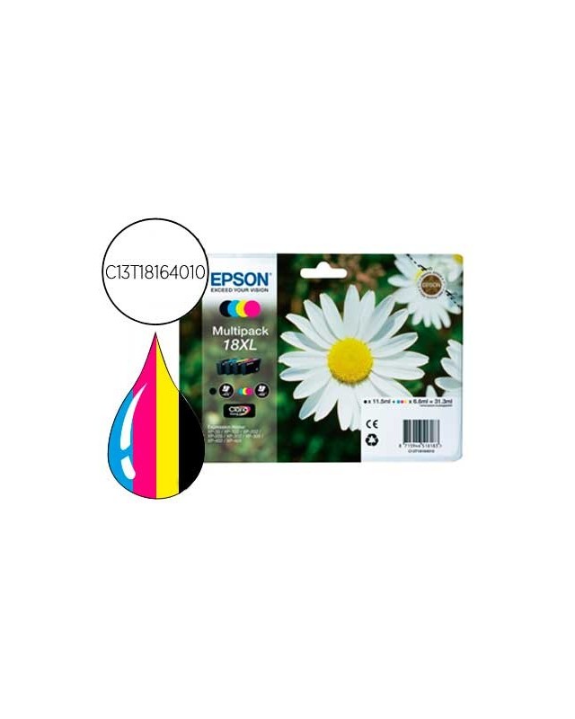 Ink-jet epson multipack t18xl negro amarillo cian y magenta xp-102 xp-205 xp-305 xp-405 capacidad 470 pag