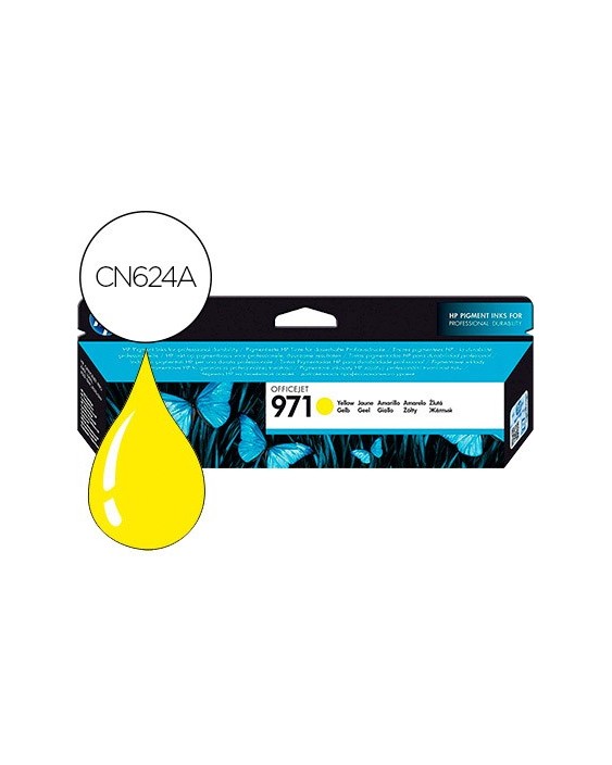 Ideal para impresión consistente y asequible de documentos en color de calidad profesional duraderos de cartuchos que son fáciles de instalar y con reciclaje gratuito.El cartucho de tinta cian HP 971 Officejet produce documentos en color de calidad profesional con gran rentabilidad, a la vez que permite ahorrar tiempo a los grupos de trabajo creando impresiones consistentes y duraderas.