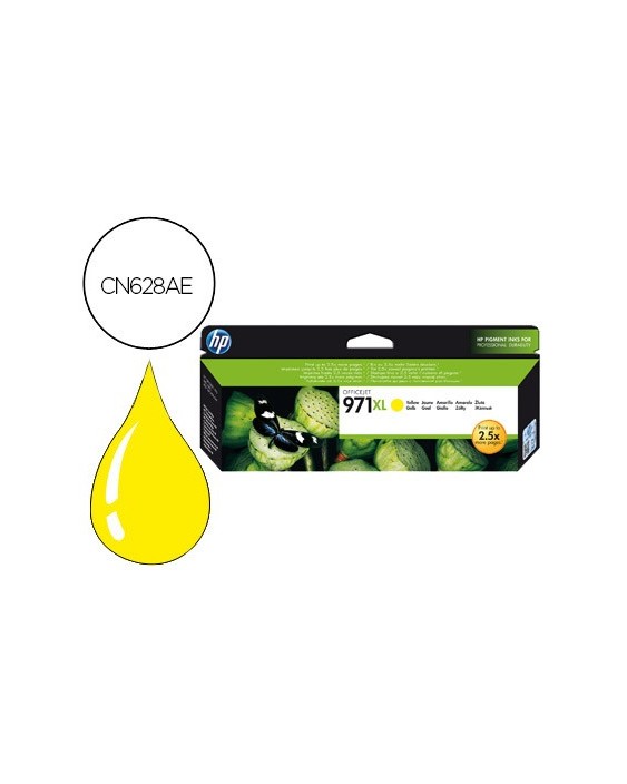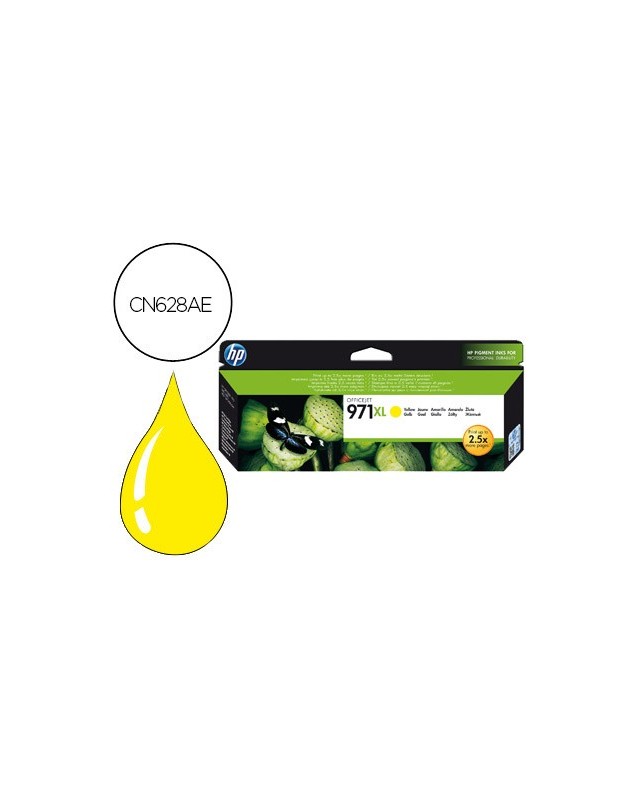 Ideal para impresión consistente y asequible de documentos en color de calidad profesional duraderos de cartuchos que son fáciles de instalar y con reciclaje gratuito. El cartucho de tinta amarilla HP 971XL Officejet produce documentos en color de calidad profesional con gran rentabilidad, a la vez que permite ahorrar tiempo a los grupos de trabajo creando impresiones consistentes y duraderas.