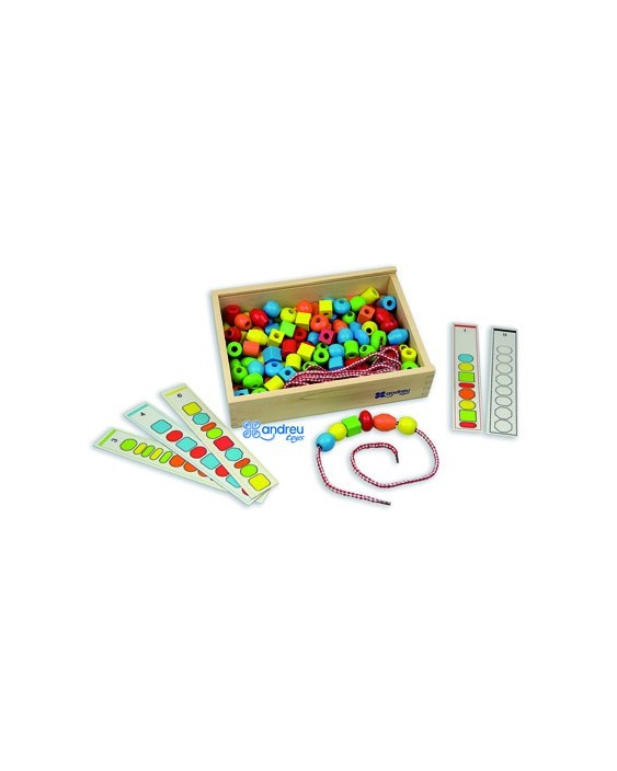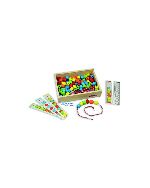 Juego andreutoys formas para ensartar + 10 cordones + 10 plantillas caja de 150 unidades surtidas
