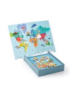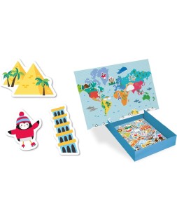 Juego magnético modelo Mapamundi para que los más pequeños aprendan a situar en el mapa un montón de monumentos y animales. Cada juego contiene: 1 escenario imantado desplegable de 36 x 28 cm para encajar en la base de la caja y 40 fichas con dibujos de monumentos y animales. Diseño exclusivo APLI Kids con originales y coloridas ilustraciones. Juego con un alto valor didáctico: fomenta la observación y la imaginación, aumenta la concentración y la atención, y genera interés en objetos, animales y personajes que desconocen. Recomendado para niños a partir de 3 años.