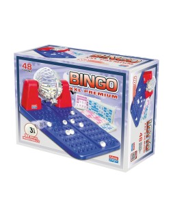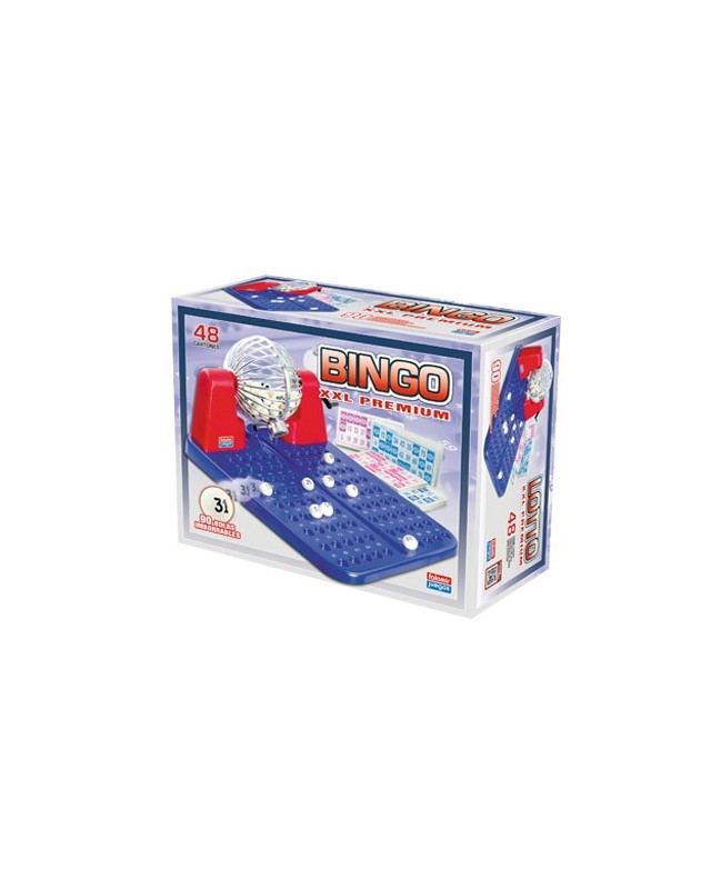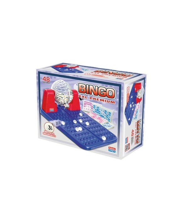 El juego de siempre no ha perdido su atractivo. Completa tus cartones y canta línea o bingo. En este modelo XXL Premium sale una bola automáticamente en cada vuelta del bombo. Su tamaño y sus bolas imborrables lo hacen único en su género. Edad: 12 años. Más de 2 jugadores. Contenido: 48 cartones, 90 bolas, 1 base bombo, 1 bolsas fichas. Medidas: 41 x 34 x 17,5 cm.