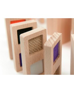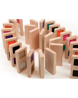 Dominó de texturas sensorial. Material didáctico idóneo para trabajar el reconocimiento táctil. También para niños o personas con algun tipo de diversidad funcional y para el colectivo de personas mayores. Incluye saco de tela. Medidas de la pieza: 8x4x1 cm.