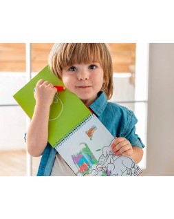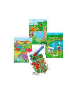 Libreta para colorear con distintas imagenes de simpáticos animalitos. Los6 dibujos son reutilizables para colorear con rotuladores de agua. Rellen a el rotulador con agua y úsalo para descubrir los dibujos ocultos. Los colores aparecen como por arte de magia, una y otra vez. Ideal para llevar de viaje.