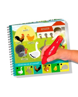 Juguete educativo de asociar preguntas y respuestas para los más pequeños,ahora en su versión mini en forma de libreta para poder llevar a cualquie r parte. Los niños se divertirán desarrollando la observación, la discriminación visual y la diferenciación de formas. Con más de 40 preguntas aprenderán conceptos como: los colores, los animales y las distintas hortalizasrelacionadas con la temática de la granja. Sistema autocorrectivo que per mite al niño comprobar si está respondiendo bien: cuando aciertas, la luz del lápiz se enciende y además hace ruido.
