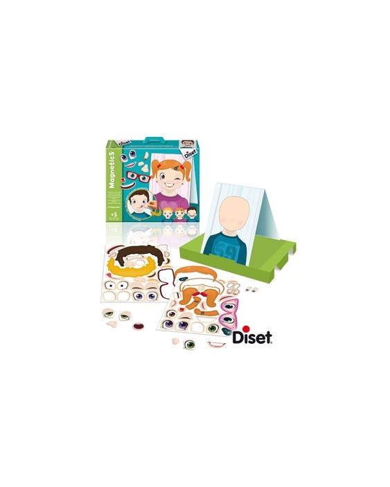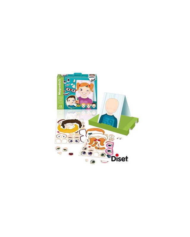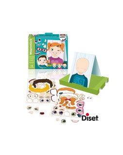 Juego magnético educativo para niños y niñas. Consiste en combinar las diferentes piezas magnéticas para hacer diferentes caras y expresiones. Los niños aprenden a que coincidan las diferentes partes de la cara y ponerlas en el lugar correcto, así como los diferentes estados de ánimo. A partir de 3 años. Medidas: 33,2 x 26,2 x 5,2 cm.
