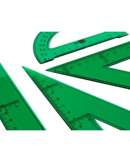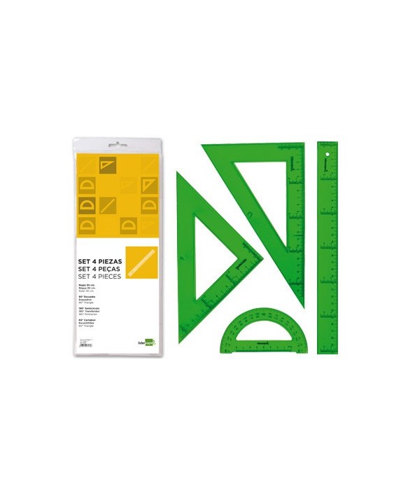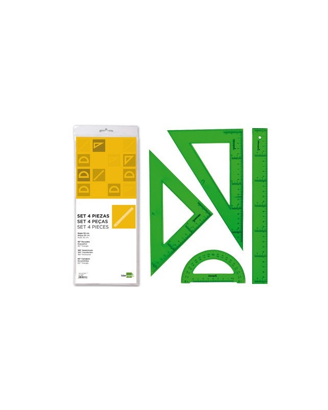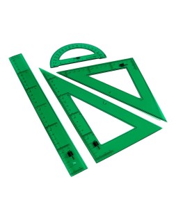 Juego escuadra cartabon regla 30 cm y semicirculo en petaca liderpapel verde